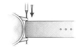 - Ako vaš sat ima bušene ušne krakove – male rupe u krakovima koje se protežu od glavnog kućišta sata – upotrijebite oštar predmet s vrhom da pomaknete oprugu i oslobodite remen. Pazite da opruga ne isklizne iz remena i izgubi se.